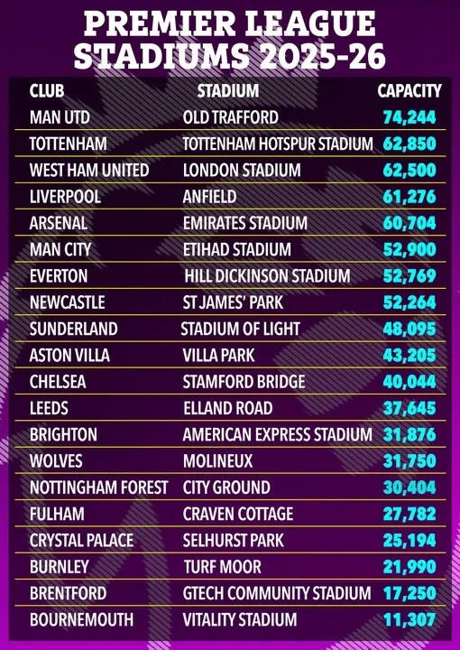 Ngày 17 tháng 10 "The Sun" đã so sánh hướng dẫn sử dụng Premier League mùa trước và mùa giải này và nhận thấy rằng sức chứa sân vận động của 5 câu lạc bộ Premier League đã thay đổi so với mùa giải trước.